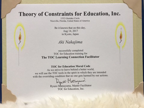 片付けられないのは 実は気持ちや悩みのこともあります。 私が2年前に学んだTOCfE (TOC:制約理論) 今回はファシリテーター認定を受けました。 受講者さんの学びを見守る役目の 認定プログラムは京都大学での終日4日間。 暑かったw 学習環境を整える 子どもの成績を上げる 整理収納アドバイザー 学習空間コンサルタント ™️ 中島亜季です。